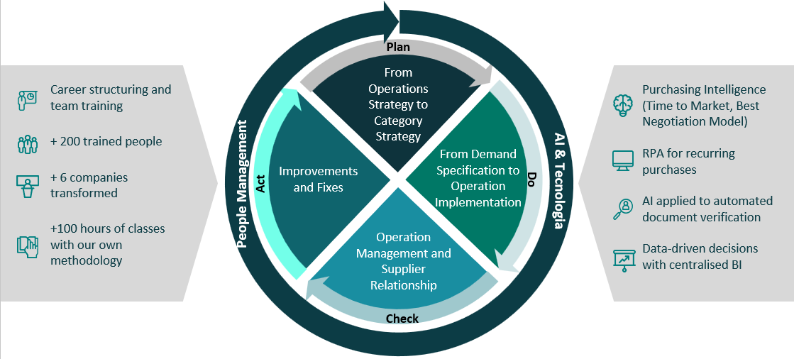 Managing purchasing categories and their suppliers is an ongoing challenge that requires continuous evolution. Effective category management is crucial as it helps organisations consolidate their spending, optimise supplier relationships, and achieve better negotiation outcomes. By applying a methodology based on the PDCA (Plan-Do-Check-Act) cycle, organisations can systematically identify opportunities for improvement, implement changes, monitor results, and refine strategies. This approach ensures that the purchasing and supplier management processes are continually enhanced, driving operational excellence.